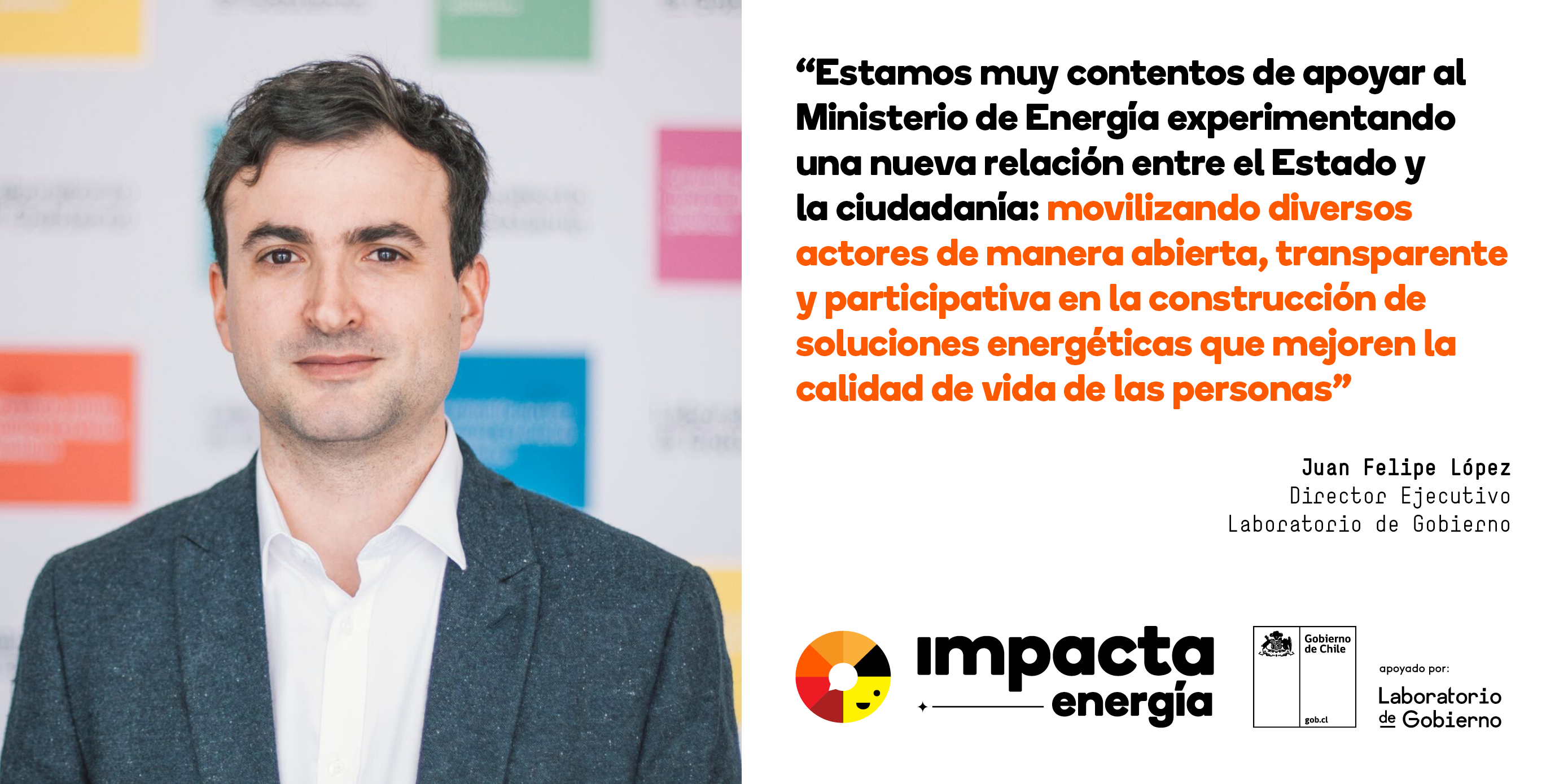 Impacta Energía tiene por objetivo abrir el Estado a nuevas ideas para innovar en desafíos claves para la cartera y el país como es la eficiencia de energía en los hogares y barrios, así como también una oportunidad para mejorar el acceso de la energía renovable en la micro, pequeña, mediana empresa. Este año el Ministerio de Energía, en un trabajo en equipo junto al Laboratorio de Gobierno, buscaron activar el ecosistema emprendedor chileno y extranjero, para incubar las mejores soluciones y transformarlas en políticas públicas.