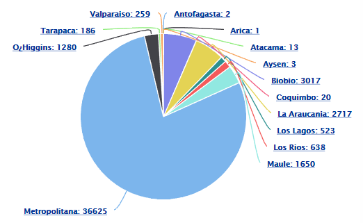 En cuanto a la distribución regional, acá puedes ver un gráfico con los clientes sin suministro por cada Región del País: