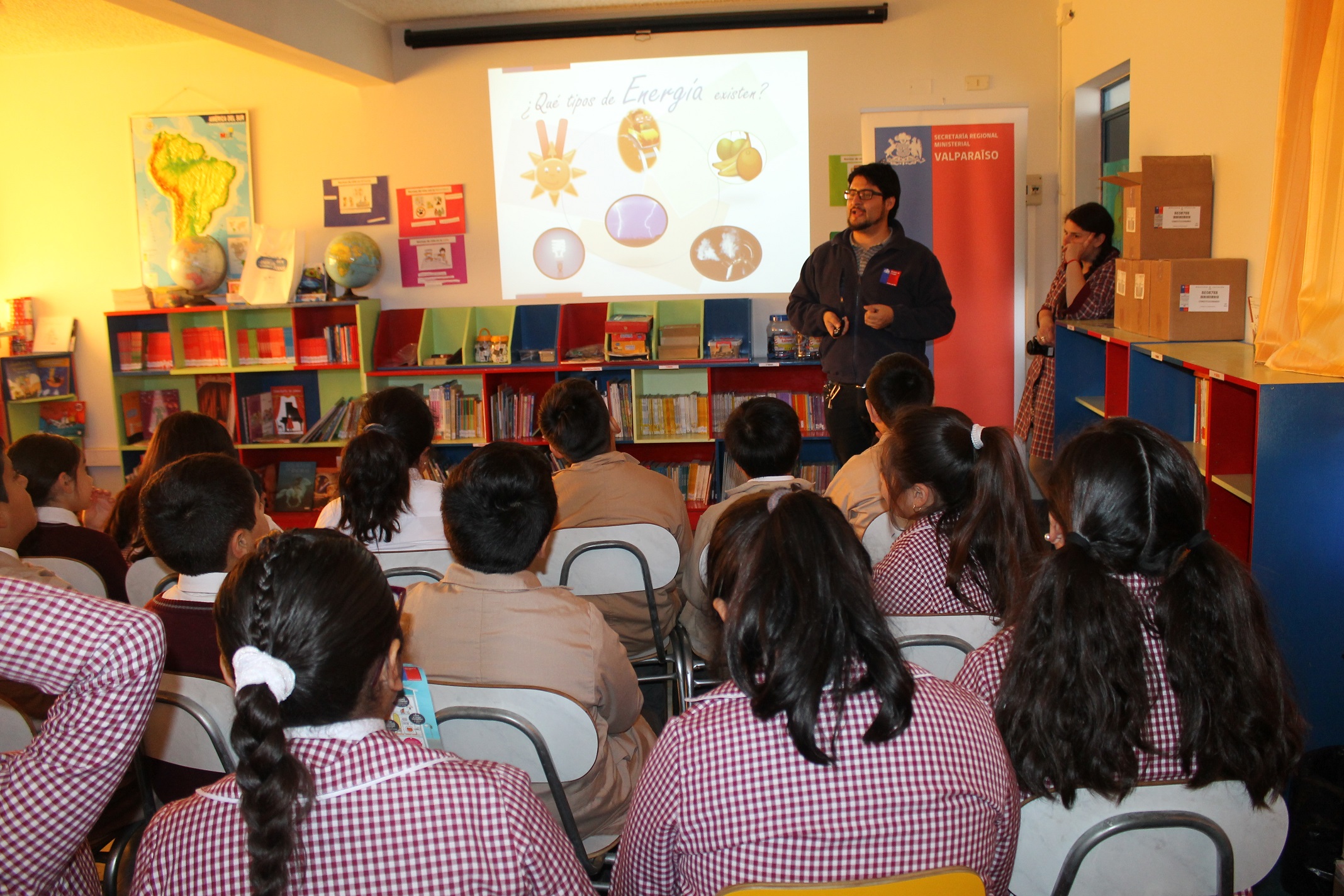 ,Continuando con la labor de promover un buen uso de la energía en los establecimientos educacionales de la Región de Valparaíso. El profesional de la Seremi de Energía Carlos Campos, desarrolló dos jornadas educativas a más de 100 alumnos y alumnas del Colegio Santa Clara ubicado en Placilla.
