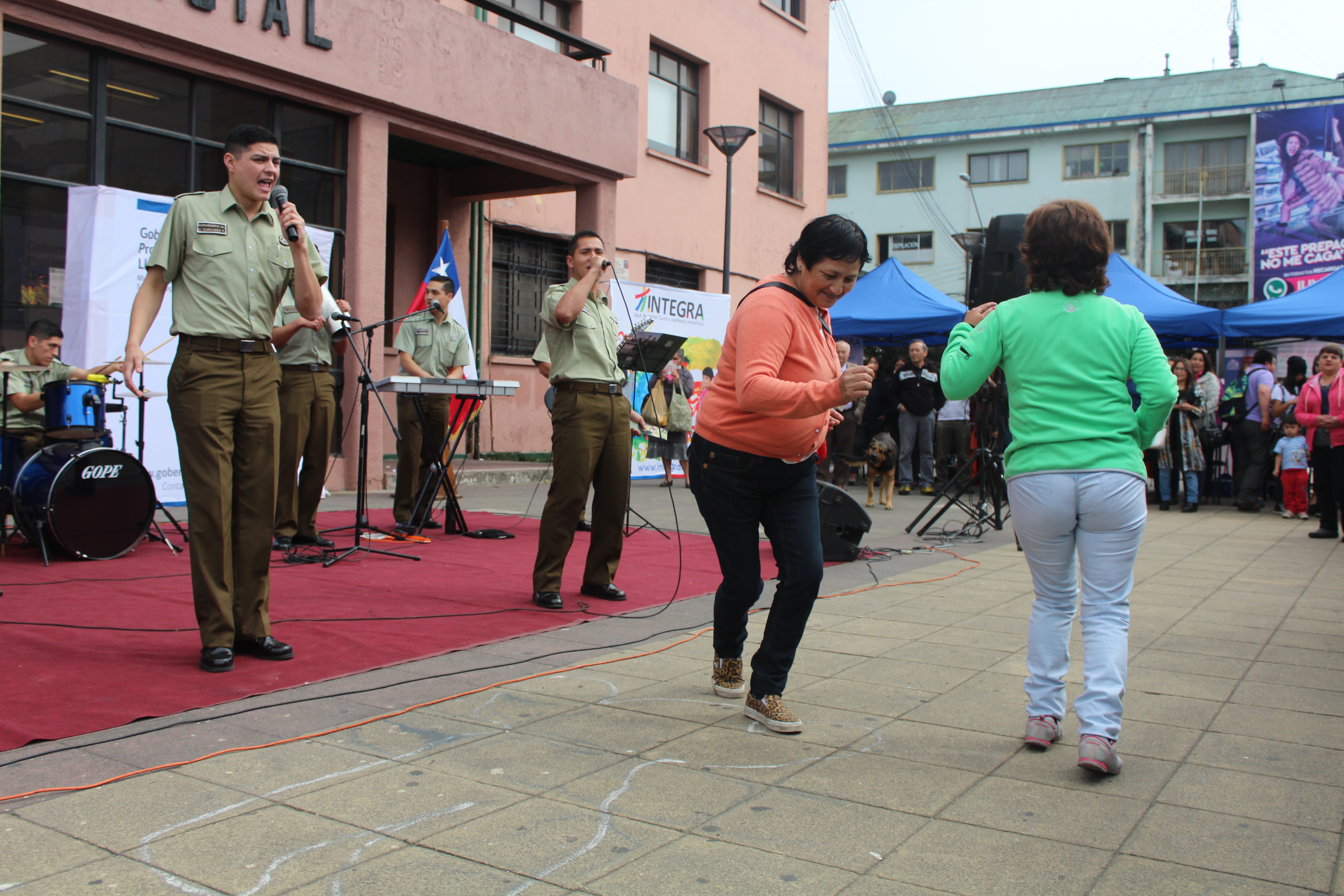 ,Las mujeres también bailaron y disfrutaron de las canciones de la Banda de Alumnos de la Escuela de Formación de Carabineros “Sonora Verde Tentación”.