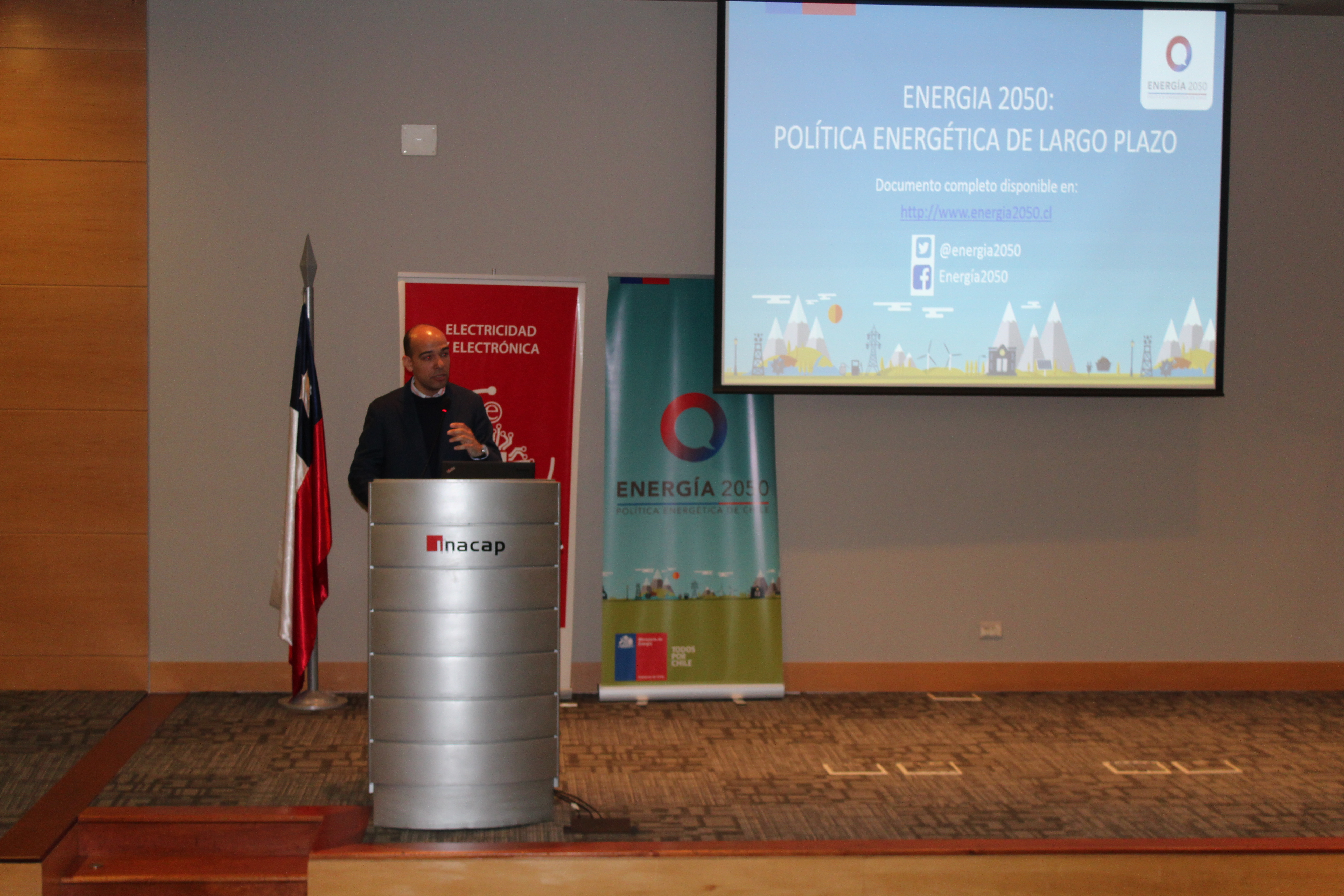 ,El taller se realizó en el auditorio del Inacap de Puerto Montt, donde el profesional explicó que en la política se propone como visión al 2050, un sector energético confiable, sostenible, inclusivo y competitivo, con el propósito de avanzar hacia una energía sustentable en todas sus dimensiones. En ese sentido, sostuvo que la Política Energética establece cuatro pilares que sostienen la visión de largo plazo, permitiendo definir metas y planes de acción del Estado, el sector privado y los ciudadanos.
