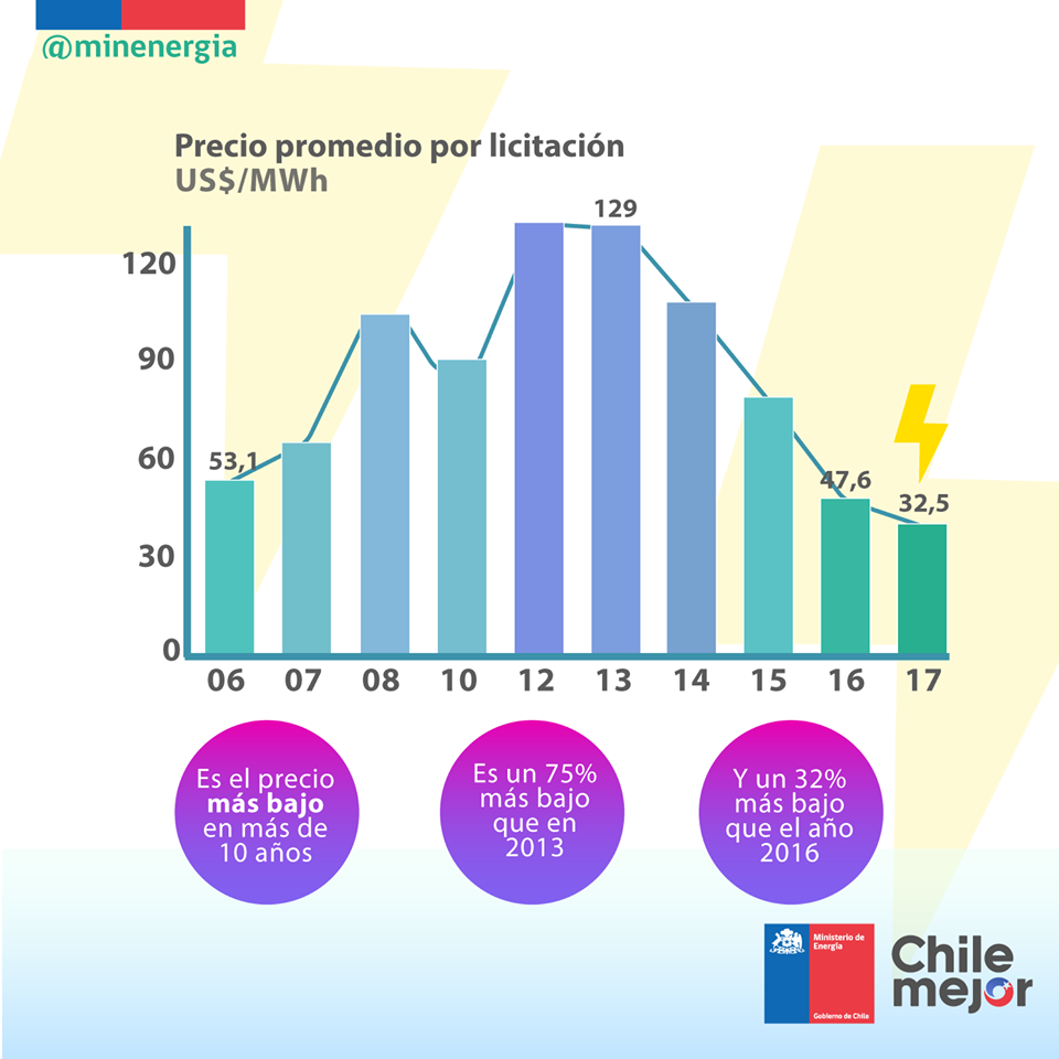 El Ministro de Energía, Andrés Rebolledo, señaló que “"Este precio de la energía es un hito en el sector, ya que es el precio más bajo que se ha dado en nuestro país. Por esta razón es una buena noticia para millones de hogares con este que van a tener cuentas de la luz más baratas. Agregó que en el 2014 “la meta planteada por la Presidenta Bachelet, era bajar los precios de la energía en un 25%, hoy podemos decir con mucha tranquilidad, transparencia y alegría, que hemos logrado bajar el precio de la energía en un 75% en los últimos tres años”.