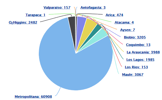 En cuanto a la distribución regional, acá puedes ver un gráfico con los clientes sin suministro por cada Región del País: