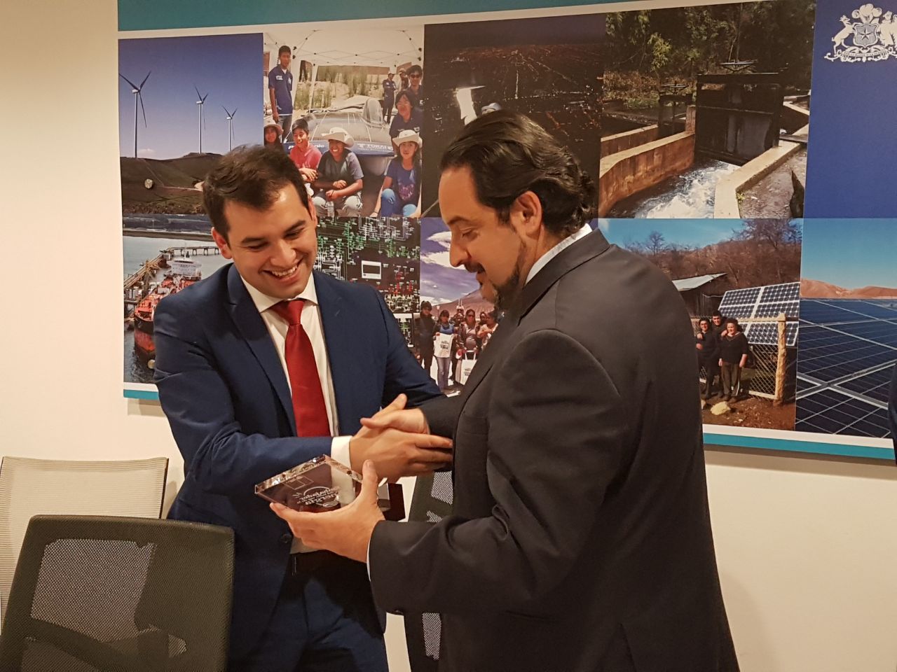 ,El Ministro de Energía, Andrés Rebolledo, fue el encargado de felicitarlos personalmente y destacar la idea de estos jóvenes, que apunta a disminuir el consumo vampiro e impulsar la eficiencia energética.